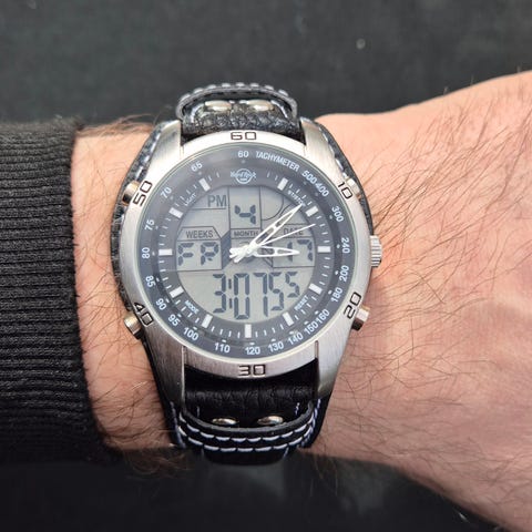 En fullverdig sveitsisk kronograf og kalender. Du trenger bare å bli vant til knappene og plasseringen deres.