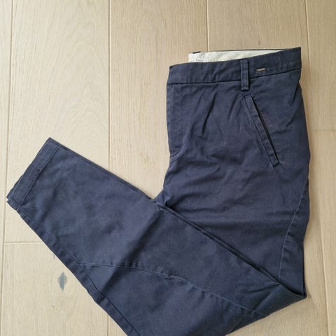 To like bukser fra Lee som fremstår som nye. Modellen heter Slim Chino, er i mørkeblå myk jeans-kvalitet med god stretch. OBS! pris er per stk.