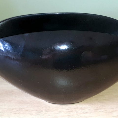 Svart potte skjuler med skål selges.