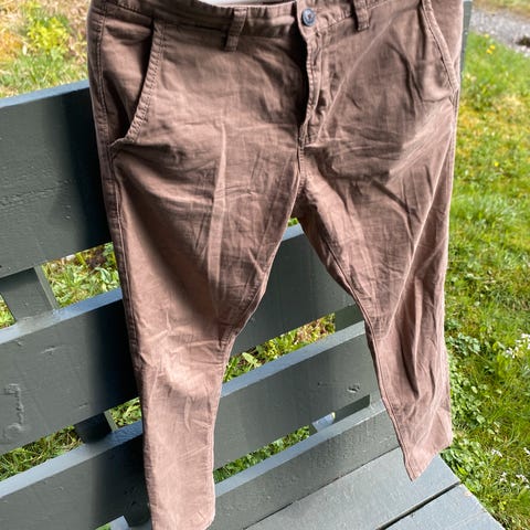 Jeg beskriver denne buksen fra Selected Homme som helt ny siden den bare har blitt prøvd på et par ganger etter at jeg fikk den. Størrelse W31 L32. Den er ruglete siden den har ligget i skapet en god stund, men den er altså helt fri for bruksmerker.