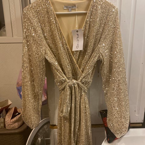 Målt fra øverst på skulderstroppen og ned til toppen av beltet er kjolen 37 cm.