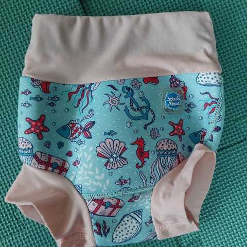 Innertruse medfølger som har borrelås. Da er det enklere å få av trusa uten gris ved uhell i bassenget.