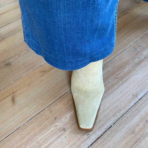 Disse nydelige blå semskede snøre støvlettene har ankelhøyde.