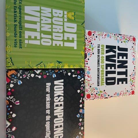 Selger bordspill. Kastet noen kort, men resten er i fin tilstand