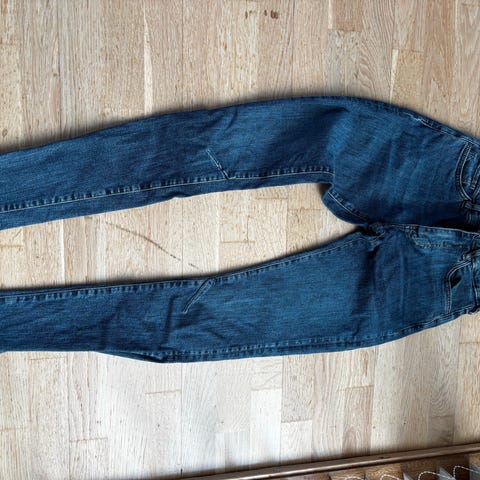 Karve dongeribukse / denim bukse med hull på knærne. Str. M