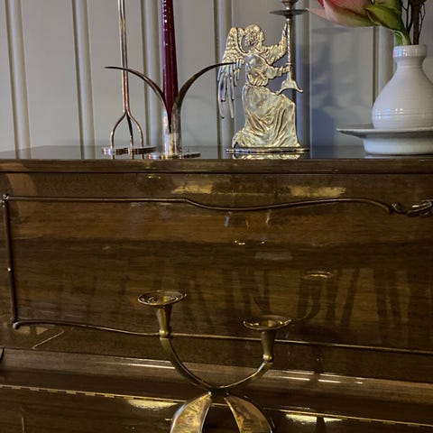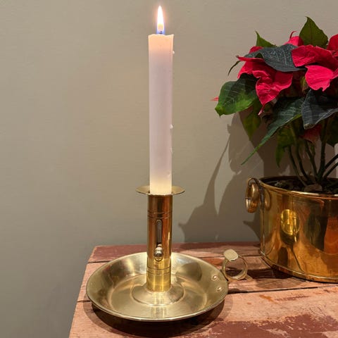 Flott og kraftig messing lysestake selges. 50 cm høy.