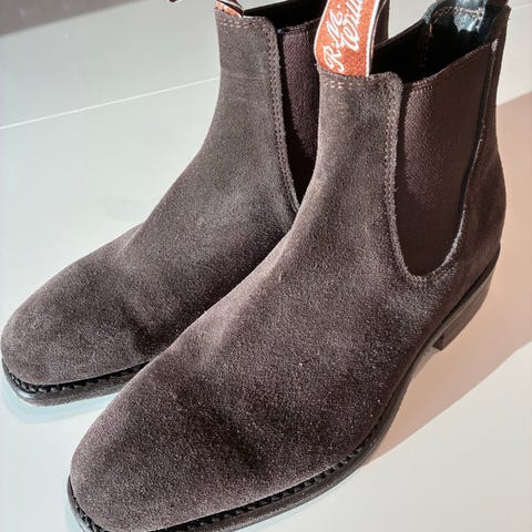 Australsk klassiker fra RM Williams. Fantastisk kvalitet (if you know you know🤗). Modell Moriarty i farge chestnut (spesial bestilt, kjøpt i Australia). Kommer med egen skokrem i riktig farge (nesten ubrukt). Har noen merker - se bilder, men er veldig lite brukt. De er akkurat litt trange for mine brede føtter dessverre. Str 38 (merket str 5). Obs! Ny pris er ca. kr 5.500, selger for kr 3.500.