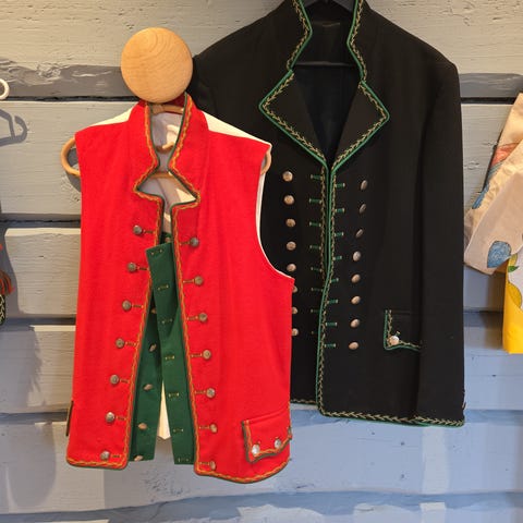 Mål vest: Bryst 120cm, Midje 114cm, Skuldre 15cm