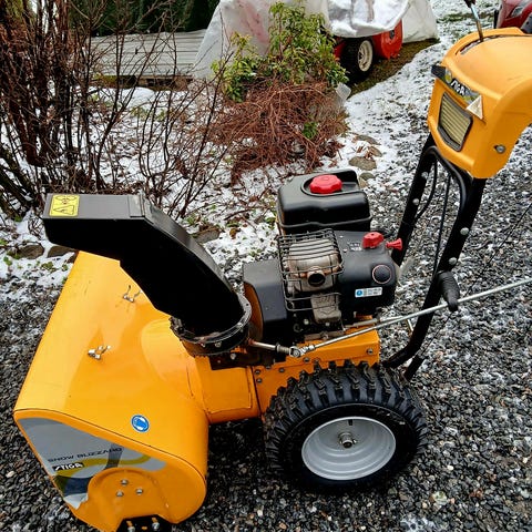 Kjenner dessverre lite til denne, men motoren starter lett og går pent. Har kun kjørt den litt rundt i sommerhalvåret, og hjul og skovler går rundt. Om noe trenger justering ved faktisk belastning med snø vet jeg ikke.