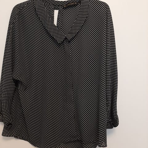 Ikke brukt bluse i sort, innsvinget. Med sort belge som du kan knytte rundt midjen.