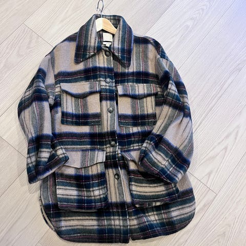 Klassisk og tidløs grå jakke. Flott passform med dobbel knappelukking, krage og stilrene detaljer. Brukt svært lite og i meget god stand!