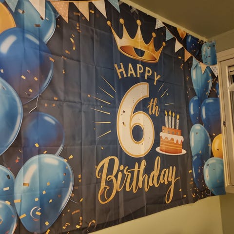 Blå Vinyl Festbakgrunn for 10-årsdagsfeiring. Størrelse ca. 180* 110