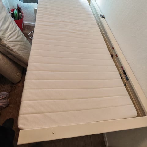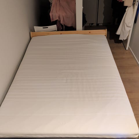Pent brukt 160cm IKEA Brimnes dobbeltseng med madrasser og oppbevaring. Lett å demontere og remontere igjen.