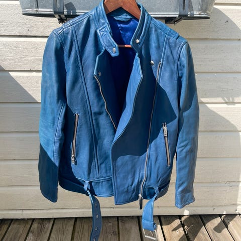 Skinnjakke fra J.Lindeberg med kule glidelåsdetaljer. Pent brukt, normal i størrelsen:—)