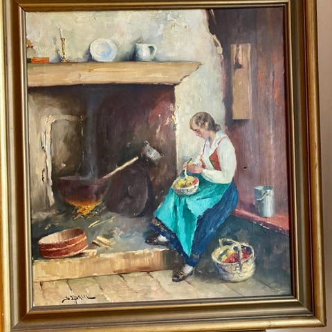 Oljemaleri, du kan se refleksjonen i rammen, den er verdt å ramme inn.