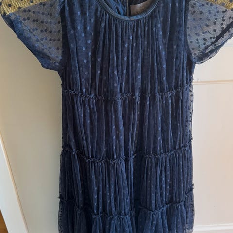Lite brukt kjole i sort velur, med lilla sløyfe og skjørt. Superfin kjole.