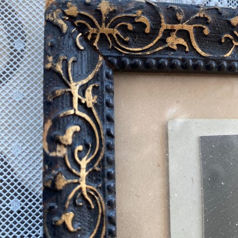 Rosemalt barberskrin med gammelt barberutstyr. Mål på skrin er: 22x15, høyde 8 cm. Kan sendes med posten.