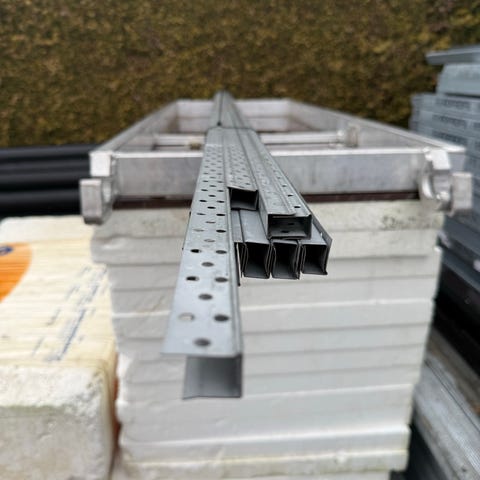Materialer I aluminium for strukturpussfasader 14 stk lister og en rull med armeringsnett til puss selges .
