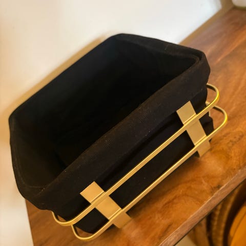 Server nystekte rundstykker eller annen gjærbakst disse stilige brødkurvene. Tekstilposen er uttakbar og laget av 100% bomull. Stålkurv belagt med en matt, sort overflate. Den er 19 cm lang, 19 cm bred og 10,5 cm høy. Tekstilposen kan rengjøres i vaskemaskin på 30 °C skånsomt program. Vaskes sammen med mørke kulører. Skal ikke tørketromles. Stålkurven kan rengjøres med en fuktig klut.