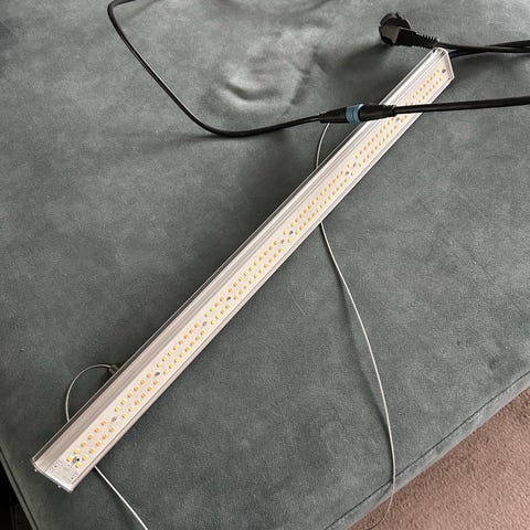 Selger disse grunna lite bruk. Fullspektrum grow light for plantekultivering. Rørene er ca 93cm lange, og kan seriekobles. Ledningen inn i veggen er 150cm.