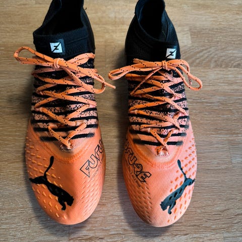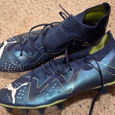 Selger ett par brukte Puma Unisex fotballsko for både gress og kunstgress. Trenger en liten vask, men mye sko igjen.