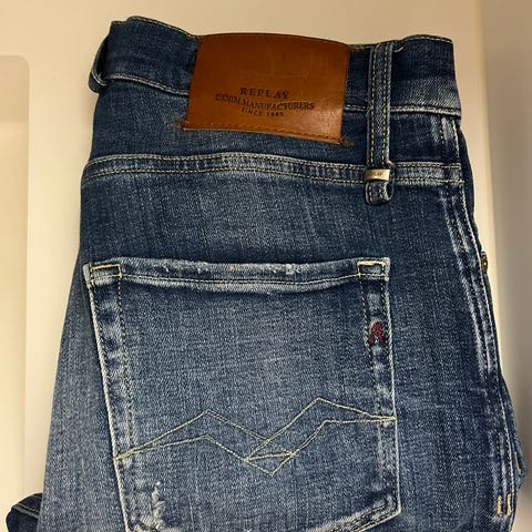 Størrelse 29, men er stor i størrelsen så passer en 31, noe som tilsvarer s-m.