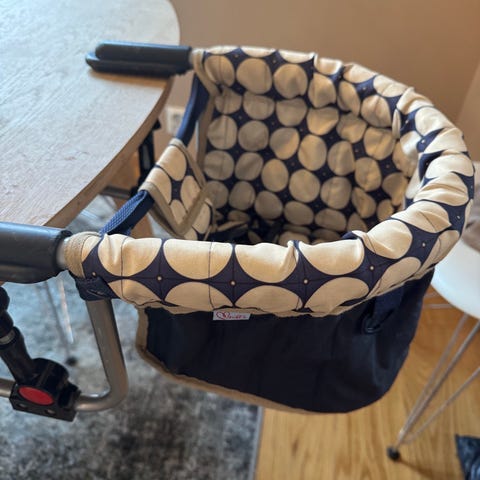 Baby sete man bruker på Tripp trapp stol. Med pute og trekk og låser samt belte til barnet.