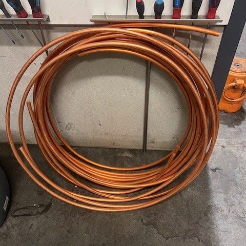 Omtrent 15 meter med kobber rør i beskyttelse for gass eller vann 10 mm diameter.