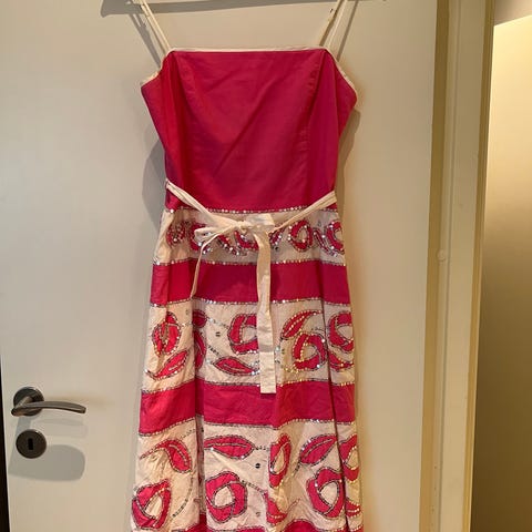 Lite og pent brukt halterneck sommer kjole/ festkjole str M/ liten L. Underskjørt med dekorativ tyllkant.