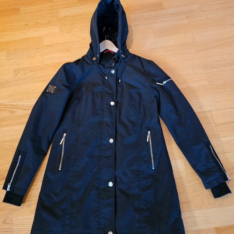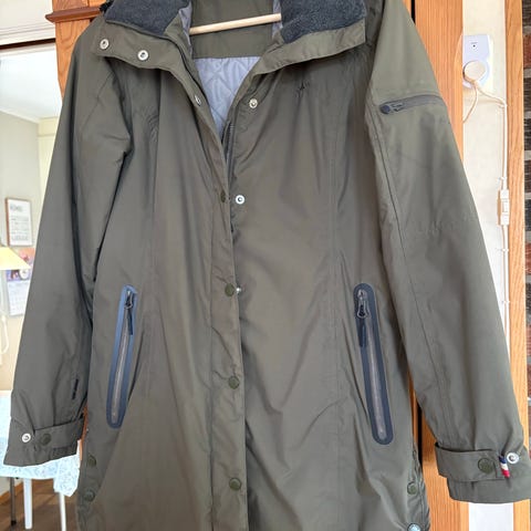 Lite brukt Søs Jensen lang jakke i str. S. Foret i øvre del, avtagbar hette og sidelommer. Fin grønfarge. Passer perfekt på denne tiden når det fortsatt kan være kjølige dager.