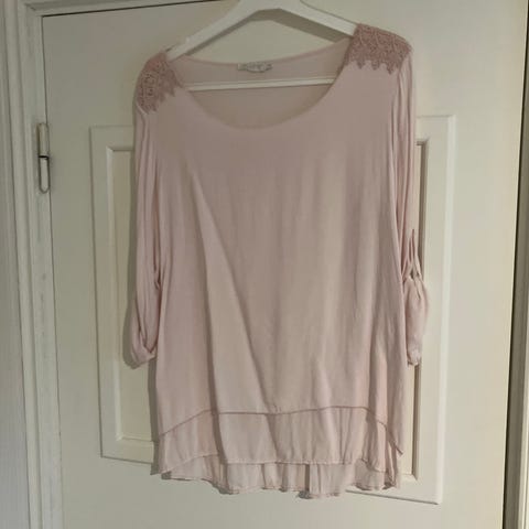 En pen rosa bluse. 2 lag, litt lenger på sidene. Brukt bare noen få ganger.