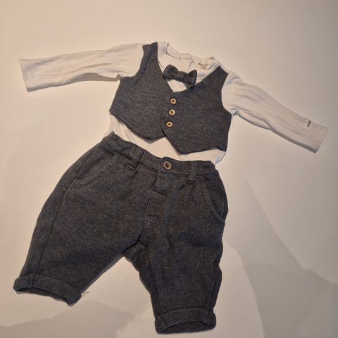 Grå bukse og vest med hvit skjorte fra Nameit.