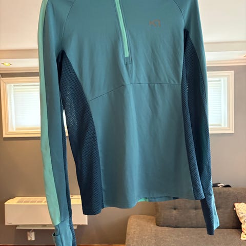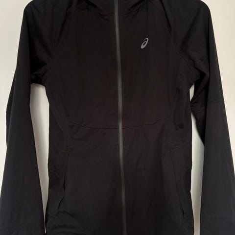 Selger en løpejakke fra Asics i str XS. Lite og pent brukt. Et par små flekker, se bilde. Ellers ingen slitasje. Selges for 150kr.