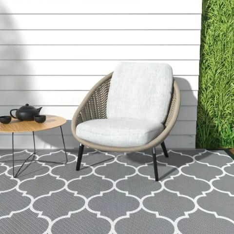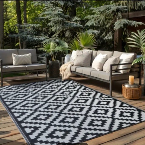 Nytt sort/hvit uteteppe på 120x180 cm.kan brukes på begge sider. Har 2 stk i disse fargene.400,-pr.stk