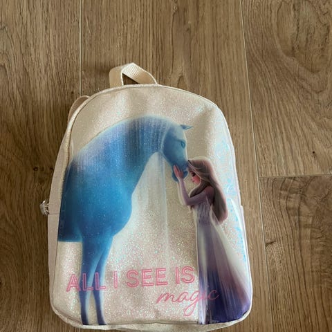 Brukt lite. Det er et lite hull på bunnen av sekken (se bilde) som man ser nesten ikke. Fint som barnehage sekk eller tur sekk.
