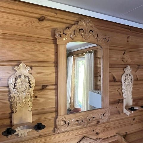 Selger en speilhylle.