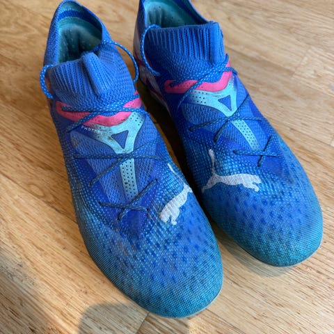 Puma Future 7 Ultimate ag/fg fotballsko str 40,5 selges for 200 kr. Nypris 2700 kr. Brukt i tre måneder. Har bruksmerker, men mye sko igjen. Ikke slitt under på knottene. Passet til kunstgress og gress. Disse er brukt på kunstgress. Nyvasket.