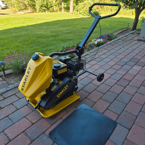 Gummi plate kan leveres med hvis en skal komprimere belegningsstein.