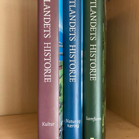 Pent brukte bøker.