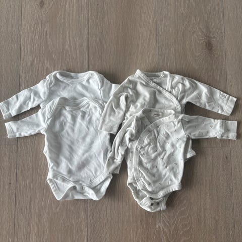 3 hvite bodyer i str 50/56 selges. Ingen anmerkninger som jeg kan se.