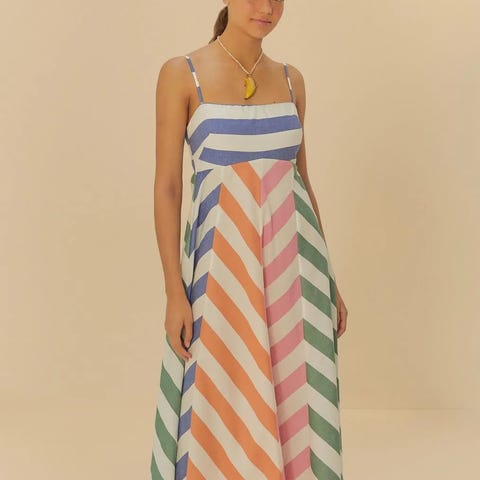 De lyse fargene og det unike mønsteret er typisk for Farm Rio, og gjør kjolen perfekt både til hverdags og spesielle anledninger. Et eksklusivt plagg fra Farm Rio sin originale sommerkolleksjon 2025. 🌟