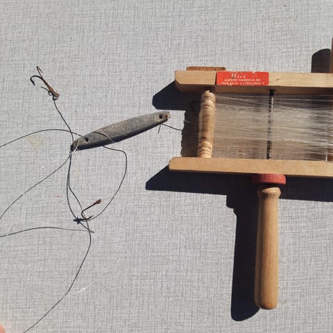 Korktre Fiske Regle med 20 m snøre og 85 gram pilk