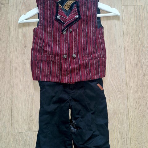 Bunad størrelse 110 (stor i størrelsen) og bunadskjorte størrelse 128 selges. Bunadsko i 28 eller 30. Gått litt opp i sømmen nederst (se bilde). Selges 400,-