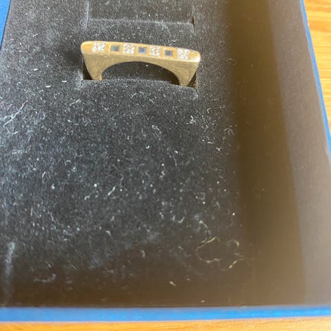 Pent brukt ,har en liten Safir og små diamanter rundt 585 gull mester merke MSS. Selges som smykke ikke per gram eller skrap pris ! Pris er satt.