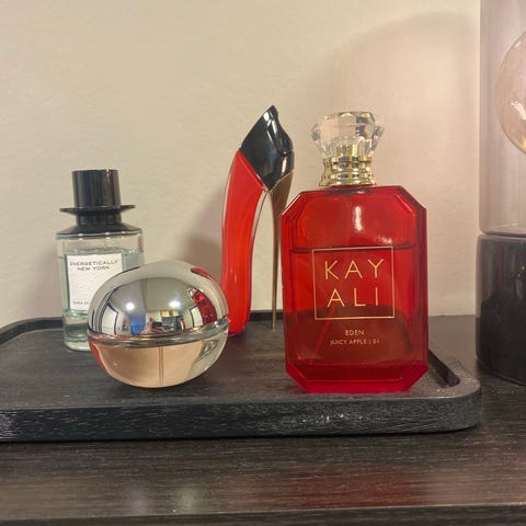 Top notes are Litchi, Black Currant, Red Apple and Italian Lemon; middle notes are Violet, Rose and Jasmine Sambac; base notes are Sugar, Vanilla Absolute, Musk, Amber, Sandalwood and Cedar.