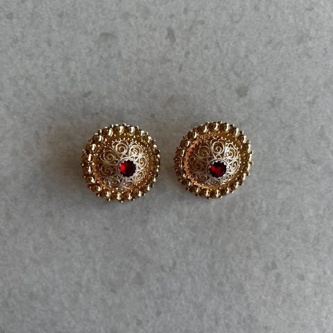 Borenål 40 mm med rød stein, forgylt