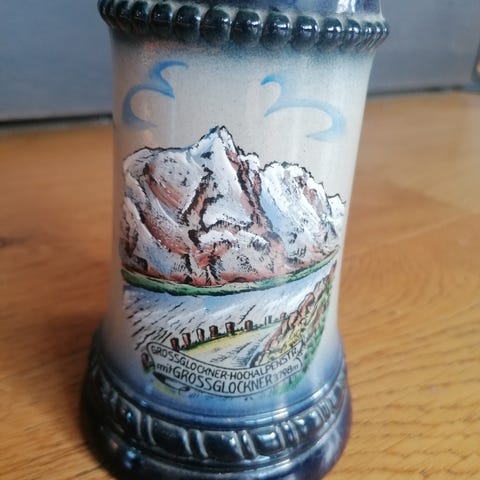 Feilfritt Ølkrus i keramikk med lokk i metall