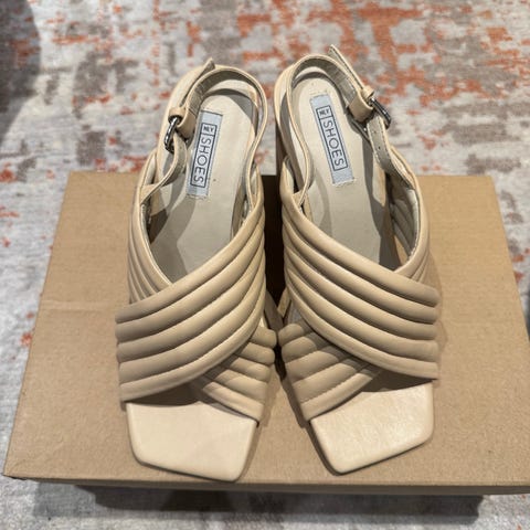 Ubrukt nydelig sandaler med høye hæler. Hæler er 5 cm høy