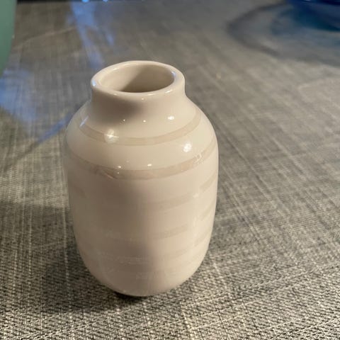 Ment vase. Til å henge på vegg. Noe krakkelert i utseendet. Ingen nagg. 220,- Sendes rimeligst med Postnord 69,- pakken utenfor Fiks Ferdig