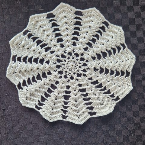 Nydelig duk, brikke, løper. Ikke brukt. Sender gjerne. Se gjerne mine andre annonser for mer strikk og heklet håndarbeid.